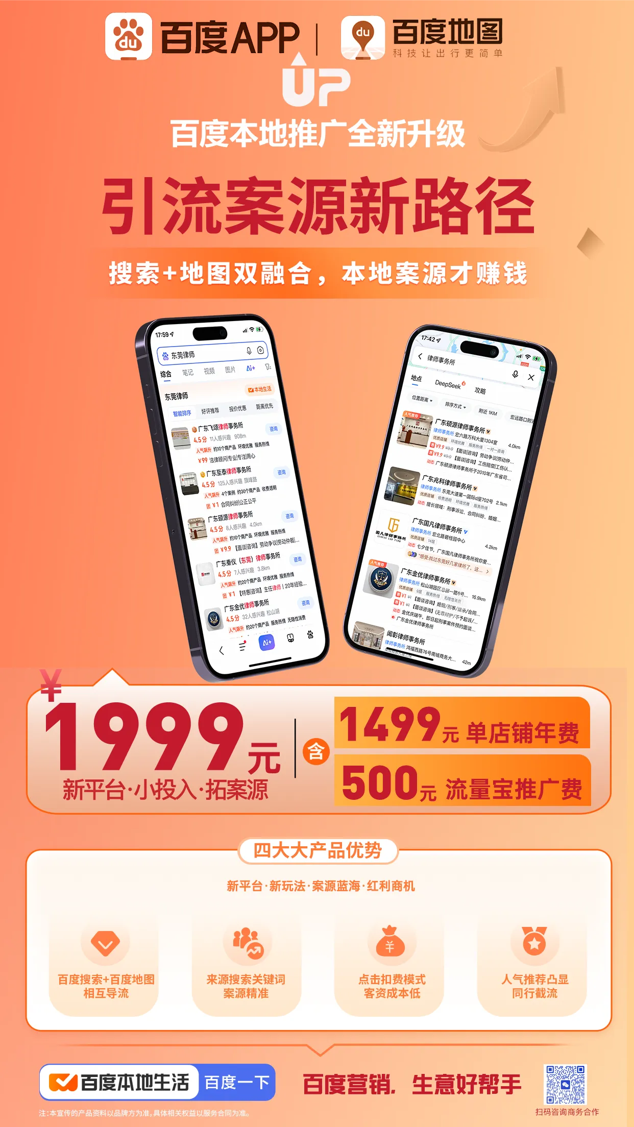百度本地推广海报 目录: 百度本地推广服务 标签: 律临, 律师, 律师推广, 律所, 案源, 法律, 百度, 百度代运营, 百度律临, 百度推广 发表日期: 21 3 月, 2026 姓名 电话 公司名称 城市 咨询合作 微信扫码分享 相关文章 客户入驻效果【入驻1周】 精选效果案例 FAQ